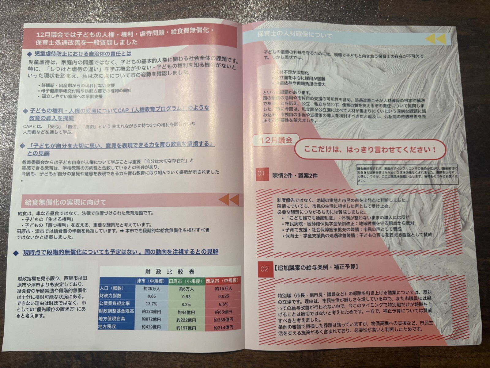 12月議会の内容を中心にまとめた資料が完成しましたので、ぜひご覧ください